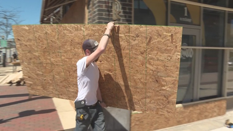 Después de las protestas del año pasado que llevaron a daño a la propiedadalgunas empresas de Akron ventanas tapiadas en previsión de un anuncio sobre los cargos contra los oficiales involucrados.